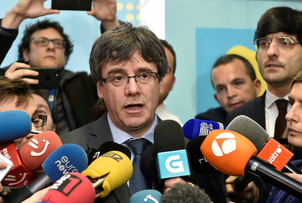 - © 2018 AFP | Crée le 25.01.2018 à 04h19 | Mis à jour le 25.01.2018 à 04h20ImprimerL'indépendantiste catalan Carles Puigdemont (c), le 24 janvier 2018 à Bruxelles JOHN THYS-AFP