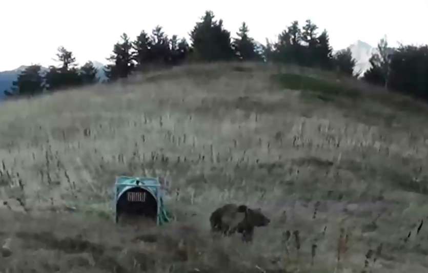 - © 2018 AFP | Crée le 06.10.2018 à 23h33 | Mis à jour le 06.10.2018 à 23h35ImprimerCapture de vidéo de l'Office national de la chasse et de la faune sauvage (ONCFS) montrant la réintroduction d'une femelle ours dans les montagnes du Béarn, le 5 octobre 2018 --l’Office national de la chasse et de la faune sauvage (l’ONCFS)/AFP