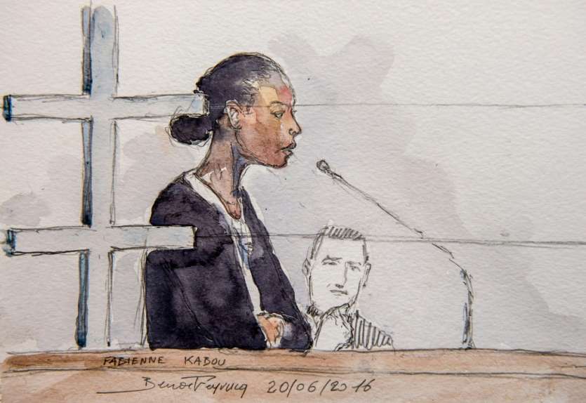 - © 2017 AFP | Crée le 09.09.2017 à 02h37 | Mis à jour le 09.09.2017 à 02h40ImprimerCroquis d'audience représentant Fabienne Kabou, le 20 juin 2016 à Saint-Omer dans le Pas-de-Calais BENOIT PEYRUCQ-AFP/Archives
