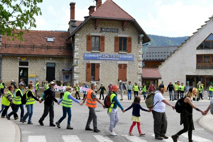 - © 2018 AFP | Crée le 06.05.2018 à 02h26 | Mis à jour le 06.05.2018 à 02h30ImprimerEnviron 300 personnes ont formé une chaîne humaine le 5 mai 2018 dans le village d'Autrans (Isère) pour protester contre les compteurs communicants Linky JEAN-PIERRE CLATOT-AFP