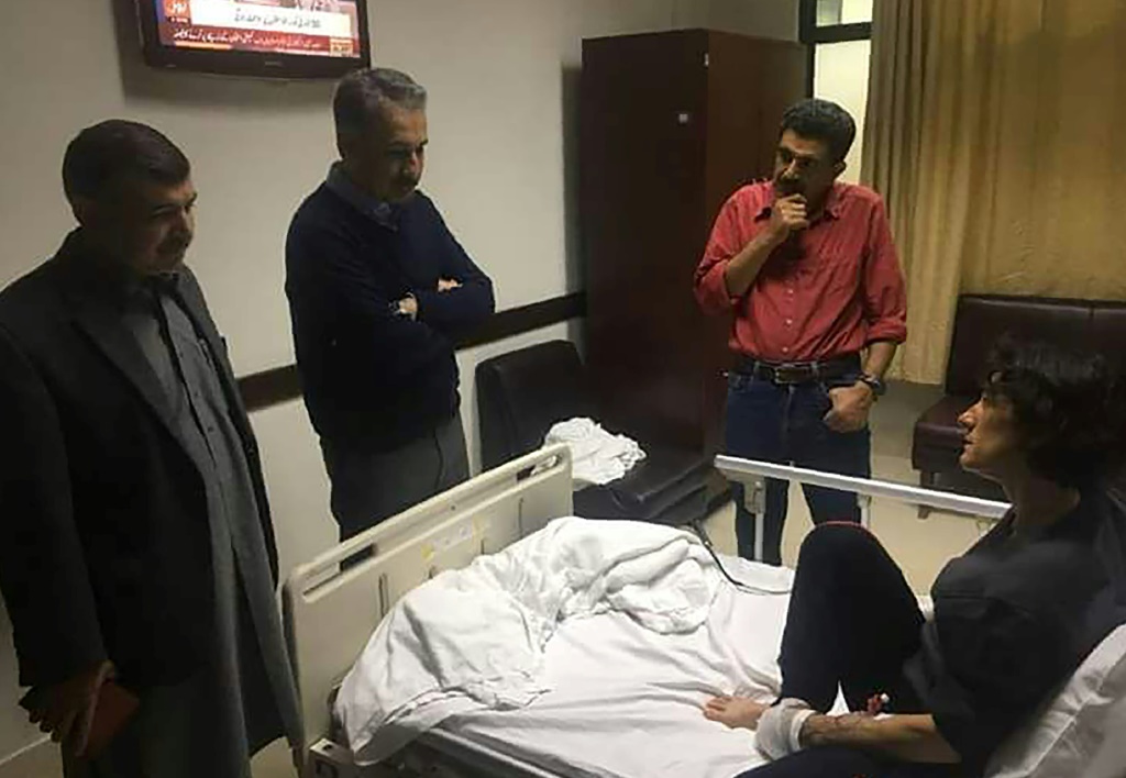 - © 2018 AFP | Crée le 31.01.2018 à 06h27 | Mis à jour le 31.01.2018 à 06h30ImprimerL'alpiniste française Elisabeth Revol, secourue sur le Nanga Parbat, au Pakistan, discute avec des officiels de la région du Gilgit Baltistan, le 29 janvier 2018 (photographie fournie par le service de communication de la région) HANDOUT-GILGIT BALTISTAN INFORMATION DEP/AFP