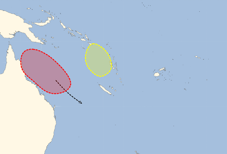 Dans son bulletin cyclonique du jour, Météo-France indique que « les conditions deviennent de plus en plus favorables à la formation de dépressions tropicales sur notre bassin. Pour la fin de la semaine, il existe un risque fort de formation d'un cyclone tropical sur l'Ouest de la Mer de Corail et un risque faible qu'une dépression tropicale modérée se forme au nord de la Nouvelle-Calédonie ».