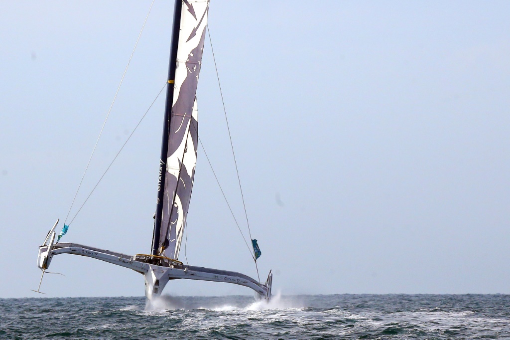 Le bateau "volant" Maxi Edmond de Rothschild, skippé par Sébastien Josse, a subi une avarie majeure, très tôt lundi matin, avec une partie de son flotteur tribord arrachée, alors qu'il était en tête de la Route du Rhum.
