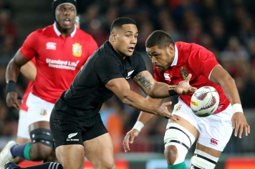 - © 2017 AFP | Crée le 08.07.2017 à 21h19 | Mis à jour le 08.07.2017 à 21h20ImprimerLe centre des All Blacks Ngani Laumape passe le ballon lors du test-match face aux Lions à l'Eden Park d'Auckland, le 8 juillet 2017 MICHAEL BRADLEY-AFP