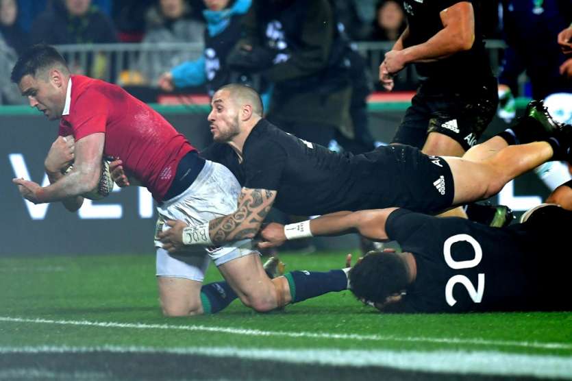 - © 2017 AFP | Crée le 01.07.2017 à 21h17 | Mis à jour le 01.07.2017 à 21h20ImprimerConor Murray (g) des Lions britanniques marque un essai lors du test-match face aux All Blacks, le 1er juillet 2017 à Wellington Marty MELVILLE-AFP