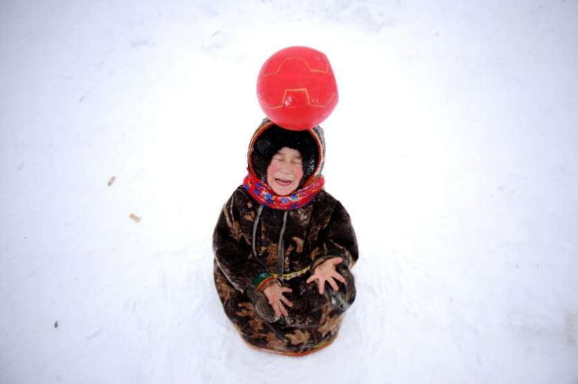 - © 2018 AFP | Crée le 05.06.2018 à 05h06 | Mis à jour le 05.06.2018 à 05h10ImprimerUn enfant d'une famille d'éléveurs de rennes Nenets joue au foot, le 6 mars 2018, dans le Nord de la Russie Sergei GAPON-AFP