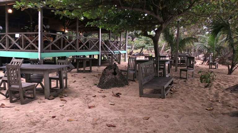 "C'est un paradis sur terre et il y a très peu de touristes", raconte Ana Secio, une Portugaise d'une trentaine d'année, en villégiature avec son fiancé dans l'un des douze bungalows de Praia Inhame, sur une plage sous les palmiers tout en bout de route à la pointe sud de l'île de Sao Tomé.