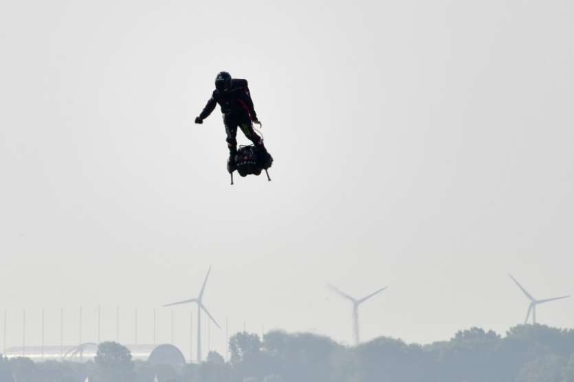 Ce jour-là, devant le président Emmanuel Macron, il avait offert un spectacle futuriste: fusil en main, il avait volé à plusieurs dizaines de mètres du sol sur son invention, "100% développée en France" dans les ateliers de Rove (Bouches-du-Rhône).