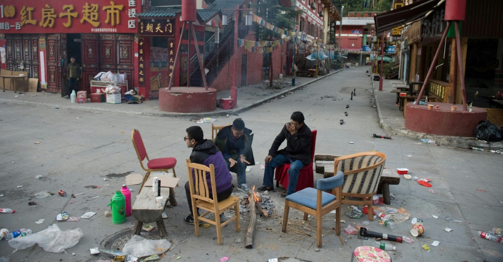 - © 2017 AFP | Crée le 10.08.2017 à 23h07 | Mis à jour le 10.08.2017 à 23h10ImprimerDes habitants qui ont dormi dehors par crainte de répliques tentent se se réchauffer autour d'un feu à Zhangzha dans la province du Sichuan (sud-ouest de la Chine) le 10 août 2017 au surlendemain d'un puissant séisme qui a fait au moins 20 morts Nicolas ASFOURI-AFP