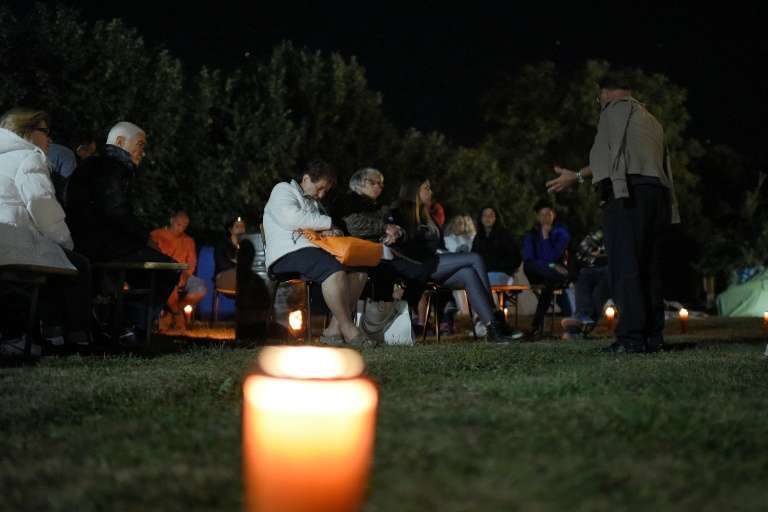 - © 2016 AFP | Crée le 30.08.2016 à 15h12 | Mis à jour le 30.08.2016 à 15h15ImprimerSoirée de prières en hommage aux victimes du séisme le 29 août 2016 dans un parc d'Amatrice