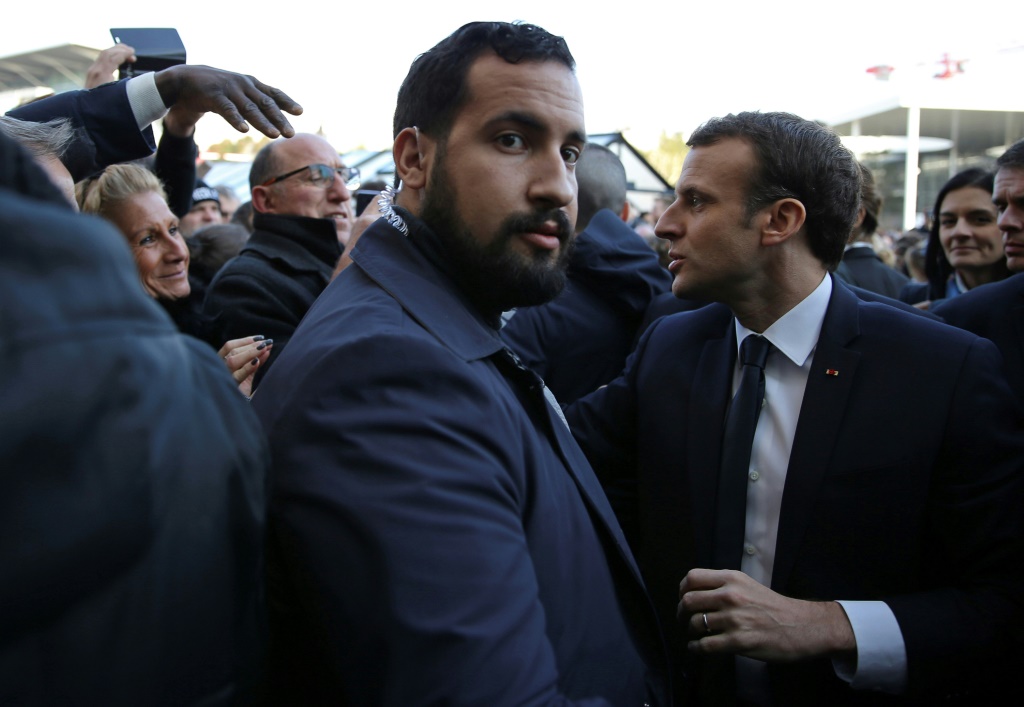 - © 2018 AFP | Crée le 19.09.2018 à 17h53 | Mis à jour le 19.09.2018 à 17h55ImprimerAlexandre Benalla (c) à côté d'Emmanuel Macron (d), le 24 février 2018 à Paris. STEPHANE MAHE-POOL/AFP/Archives