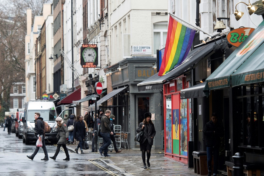 - © 2017 AFP | Crée le 20.07.2017 à 20h28 | Mis à jour le 20.07.2017 à 20h30ImprimerSoho, le quartier gay de Londres, le 27 février 2017 Justin TALLIS-AFP/Archives