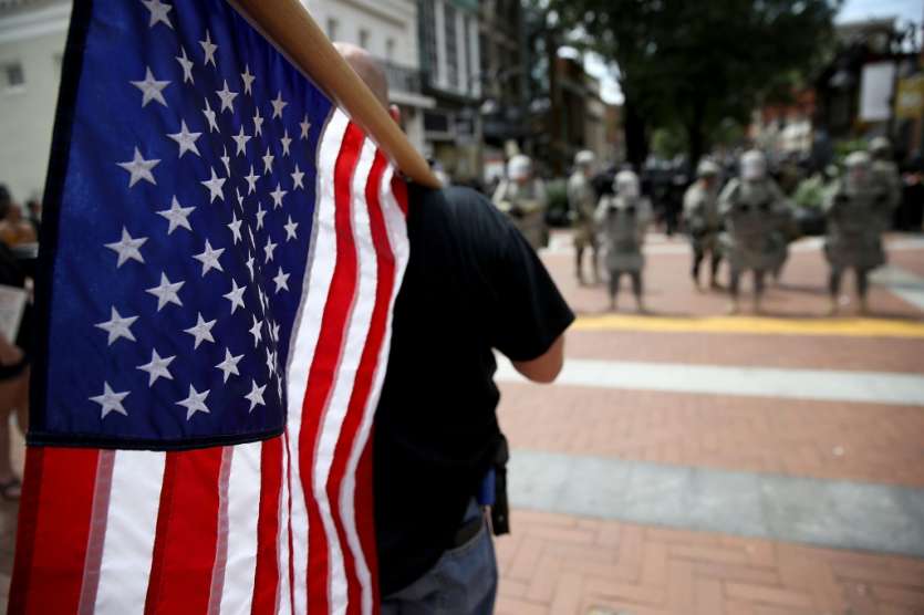- © 2017 AFP | Crée le 21.08.2017 à 18h17 | Mis à jour le 21.08.2017 à 18h20ImprimerUn manifestant à Charlottesville le 12 août 2017 WIN MCNAMEE-GETTY IMAGES NORTH AMERICA/AFP/Archives