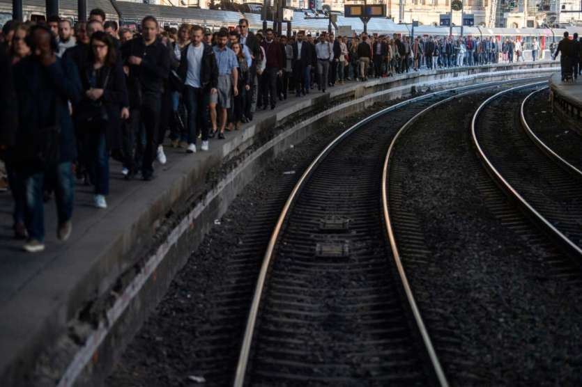 - © 2018 AFP | Crée le 23.04.2018 à 22h56 | Mis à jour le 23.04.2018 à 23h00ImprimerLes quais bondés de la gare Saint-Lazare à Paris le 19 avril 2018 Christophe SIMON-AFP