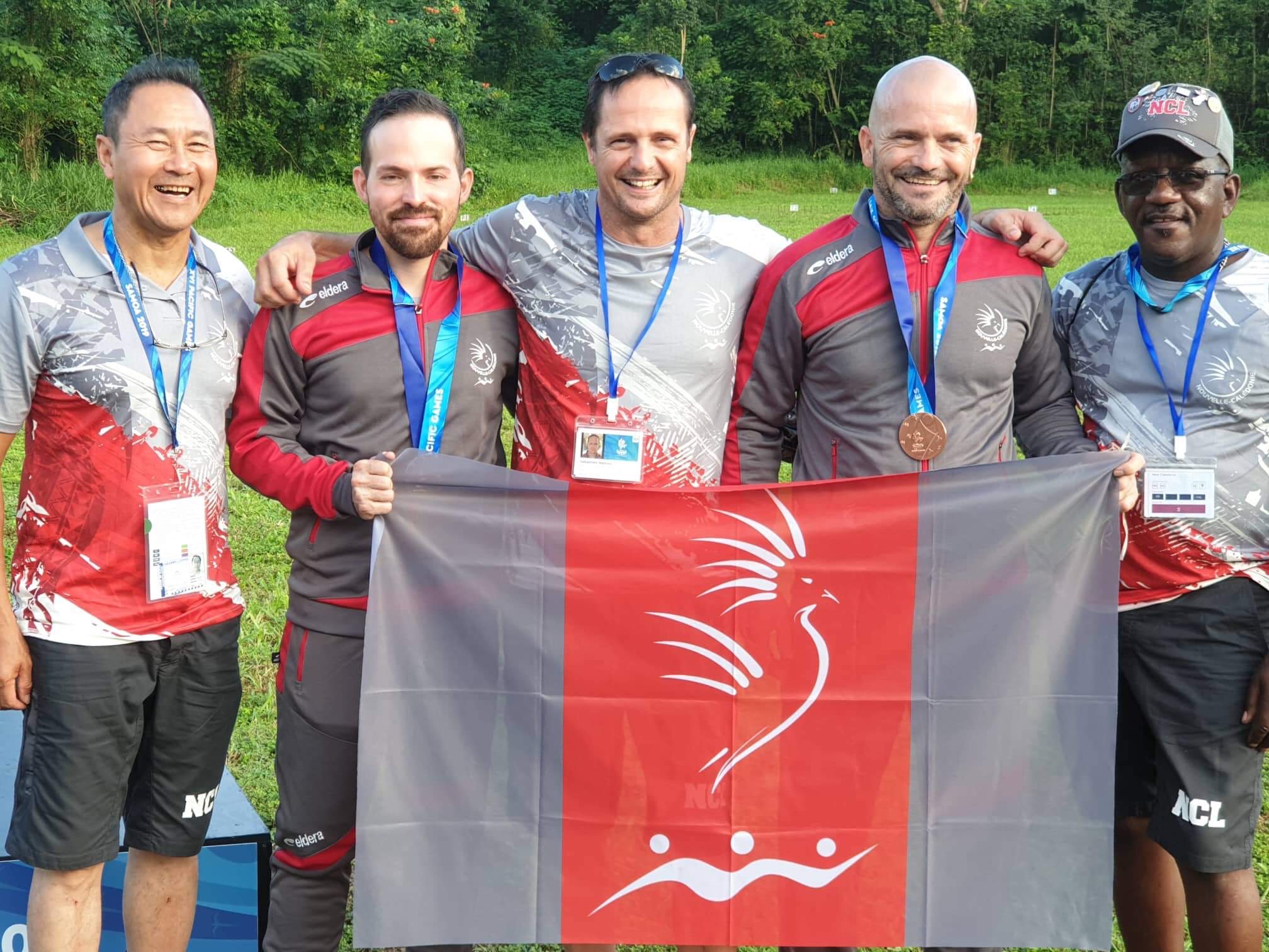 Comme hier sur le combiné, Cédric Limousin s’en est le mieux sorti, mais pas uniquement dans le camp calédonien, sur l’ensemble des concurrents. Il remporte l’or avec un score de 508 points, devant le Tahitien Freddy Yen Kway en argent (502 pts) et Johan Perchard en bronze (498 pts). Un doublé sur la boîte qui offre au binôme une nouvelle médaille d’or par équipe.