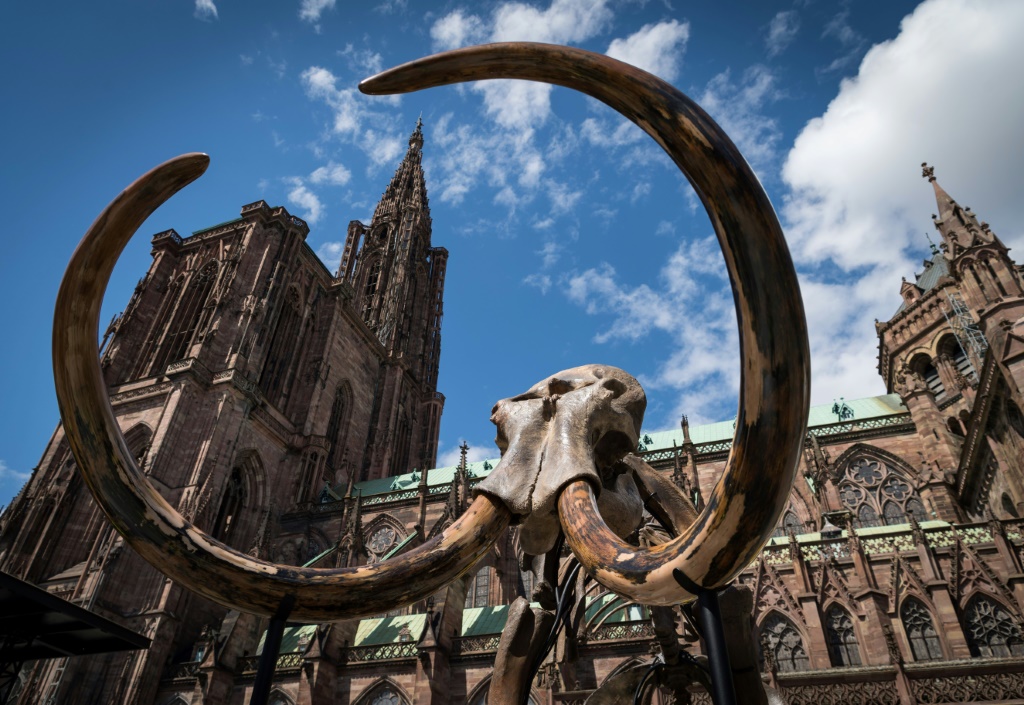L'animal volerait presque la vedette à la cathédrale de Strasbourg : un squelette de mammouth vieux de 12.000 ans, perché sur une plateforme à quelques mètres du joyau d'art gothique en grès rose, captive l'intérêt de milliers de touristes depuis lundi.