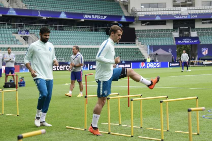 - © 2018 AFP | Crée le 16.08.2018 à 05h29 | Mis à jour le 16.08.2018 à 05h35ImprimerLes attaquants de l'Atletico Madrid Diego Costa et Antoine Griezmann à l'entraînement le 14 août 2018 à Tallinn, à la veille de la Supercoupe d'Europe contre le Real JAVIER SORIANO-AFP