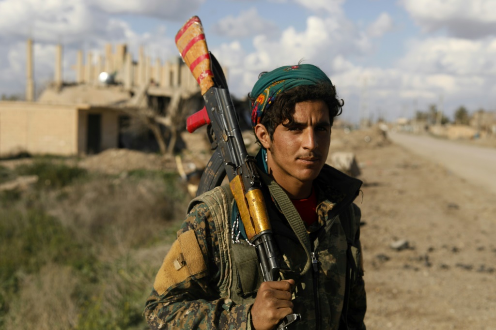 - © 2019 AFP | Crée le 20.02.2019 à 05h12 | Mis à jour le 20.02.2019 à 05h15ImprimerPhoto prise le 18 février 2019 dans le village de Baghouz, dans l'est de la Syrie, montrant un combattant des Forces démocratiques syriennes (FDS) Delil souleiman-AFP
