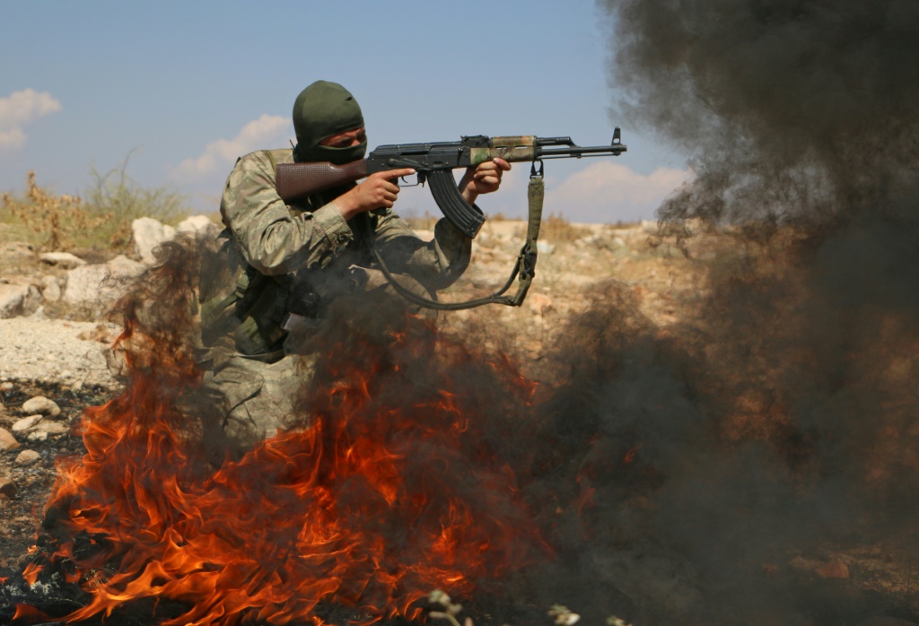 - © 2018 AFP | Crée le 30.09.2018 à 21h45 | Mis à jour le 30.09.2018 à 21h50ImprimerUn rebelle syrien, combattant au sein du Front national de libération (FNL) --une coalition de groupes rebelles formée début août-- lors d'un entraînement militaire dans le nord de la province syrienne d'Idleb, le 11 septembre 2018 Aaref WATAD-AFP/Archives