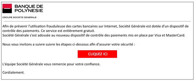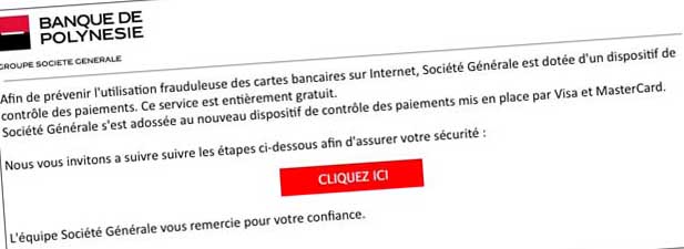 C'est une tentative d'arnaque un peu plus fine que les précédentes qui circule actuellement dans les messageries calédoniennes et qui vise, plus particulièrement, les clients de la Société Générale.