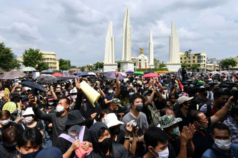 - © 2020 AFP | Crée le 17.08.2020 à 05h22 | Mis à jour le 17.08.2020 à 05h25ImprimerDes milliers de manifestants anti-gouvernement rassemblés à Bangkok (Thaïlande) le 16 août 2020 Mladen ANTONOV-AFP