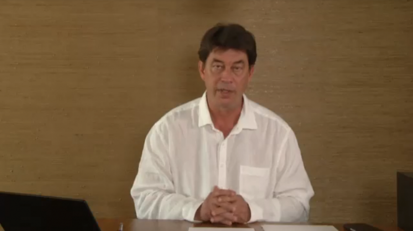 Le président du gouvernement est apparu sur un fond inhabituel. Et pour cause, Thierry Santa a annoncé, ce samedi lors du point presse, être placé en quatorzaine à l'hôtel Le Méridien, à Nouméa. "Je ne travaille pas au gouvernement de la Nouvelle-Calédonie parce que les Calédoniens qui risquent d'être contaminés sont actuellement en quatorzaine pour protéger leur entourage. Moi aussi je protège mon entourage, qu'il soit familial ou professionnel", a-t-il expliqué.