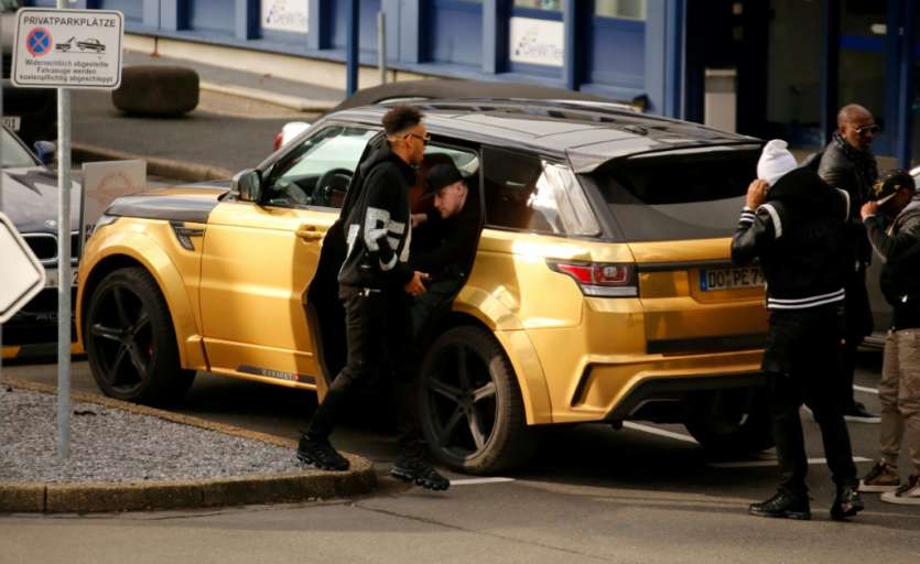 - © 2018 AFP | Crée le 31.01.2018 à 22h32 | Mis à jour le 31.01.2018 à 22h35ImprimerL'attaquant gabonnais Pierre-Emerick Aubameyang (g) à son arrivée à l'aéroport de Dortmund, le 30 janvier 2018 Guido Kirchner-dpa/AFP