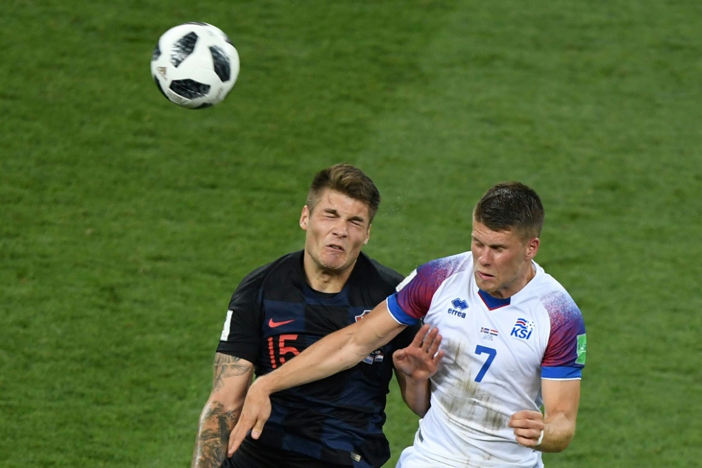 - © 2018 AFP | Crée le 20.07.2018 à 20h35 | Mis à jour le 20.07.2018 à 20h40ImprimerLe défenseur central croate Duje Caleta-Car (g) à la lutte avec le milieu islandais Johann Gudmundsson au Mondial, le 26 juin 2016 à Rostov Khaled DESOUKI-AFP/Archives