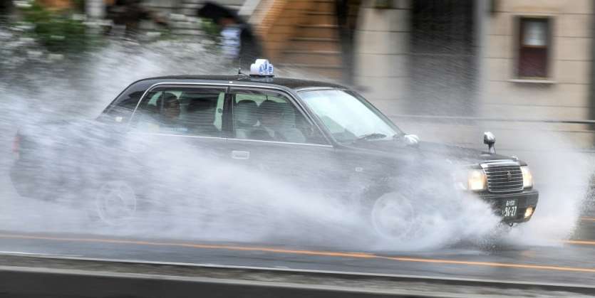 - © 2019 AFP | Crée le 12.10.2019 à 19h29 | Mis à jour le 12.10.2019 à 19h30ImprimerUn taxi dans une rue de Tokyo à l'approche du typhon Hagibis, le 12 octobre 2019 William WEST-AFP