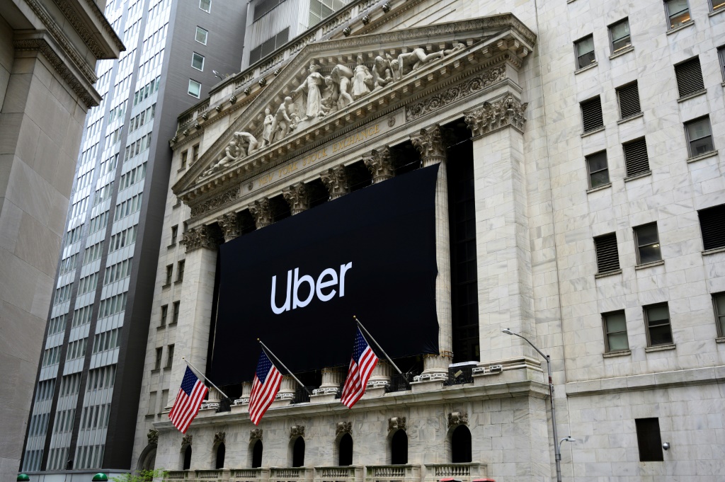 La bannière noire et blanche d'Uber barrait la façade de la célèbre Bourse de New York au sud de Manhattan vendredi pour le baptême boursier du leader mondial de la réservation de voitures avec chauffeur, annoncé comme l'événement de l'année à Wall Street.