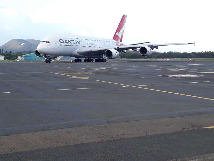 Un avion « gros porteur » de la compagnie Qantas sur le tarmac de La Tontouta.
