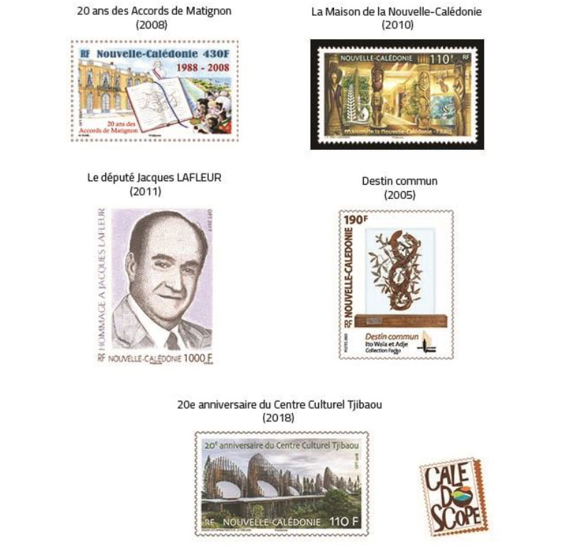 Ce n'est pas la première fois que l'histoire récente de la Nouvelle-Calédonie se retrouve dans les timbres-poste. La création des trois provinces, l'accord de Nouméa, Jacques Lafleur et Jean-Marie Tjibaou, Dick Ukeiwë ou bien encore le premier préfet kanak Ienic Iékawé, le député Roger Gervolino ont fait l'objet d'émission de timbres postaux.