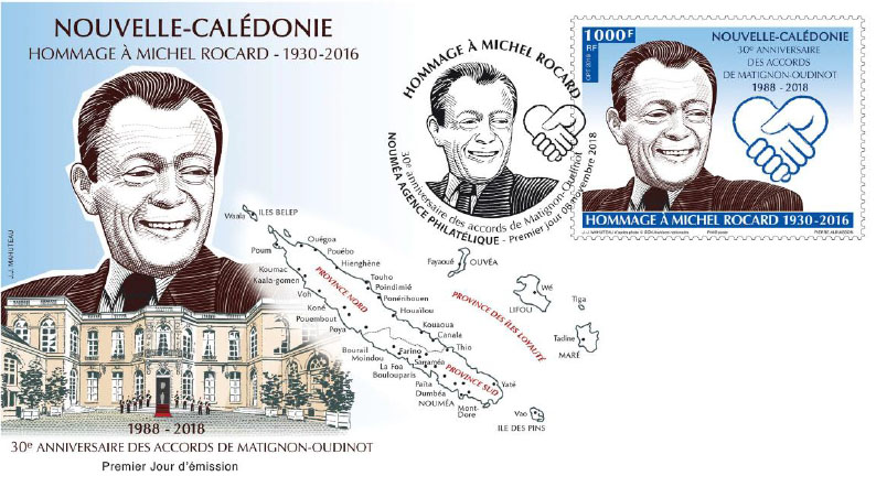 Ce jeudi, l'OPT émet un timbre-poste en hommage à Michel Rocard, dont le nom est étroitement associé aux accords de Matignon-Oudinot, dont on célèbre cette année le trentième anniversaire. Cette initiative s'inscrit d'ailleurs dans le cadre de cette commémoration.