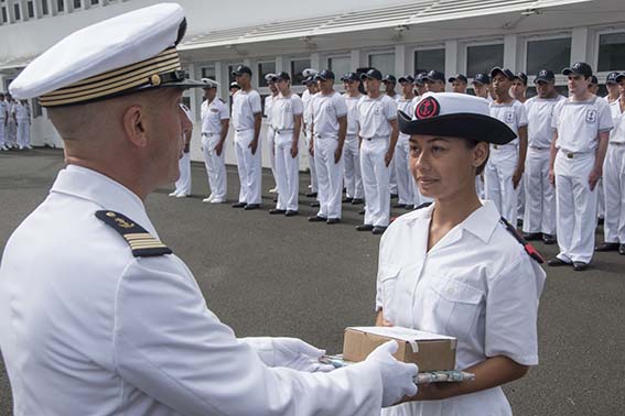 Et c'est une fille, Marie Dewi Latip (photo), tout juste 18 ans, qui a terminé major de cette promotion - et a reçu un tricorne en souvenir de son excellente prestation.Elle a été suivie d'une autre fille, Inès Roche, qui a reçu le 2e prix des mains de Robert Bertram, président de l'Association des officiers de réserve de la marine nationale (Acoram). Et par Matthieu Duplant, premier garçon, récompensé par Christian Futaully, de l'Association des anciens marins (Ammac).