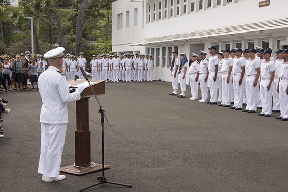 Après avoir passé les troupes en revue, en présence d'environ 200 personnes, notamment des familles des stagiaires, le commandant de la base navale Amaury Bullier a félicité ces jeunes pour leurs résultats et pour la qualité de leur engagement tout au long des cinq semaines de cette instruction militaire au cours desquelles les stagiaires ont notamment pu faire une sortie en mer sur le bâtiment multimissions D'Entrecasteaux ou le patrouilleur La Moqueuse, s'initier au corps-à-corps ou au tir au fusil d'assaut.