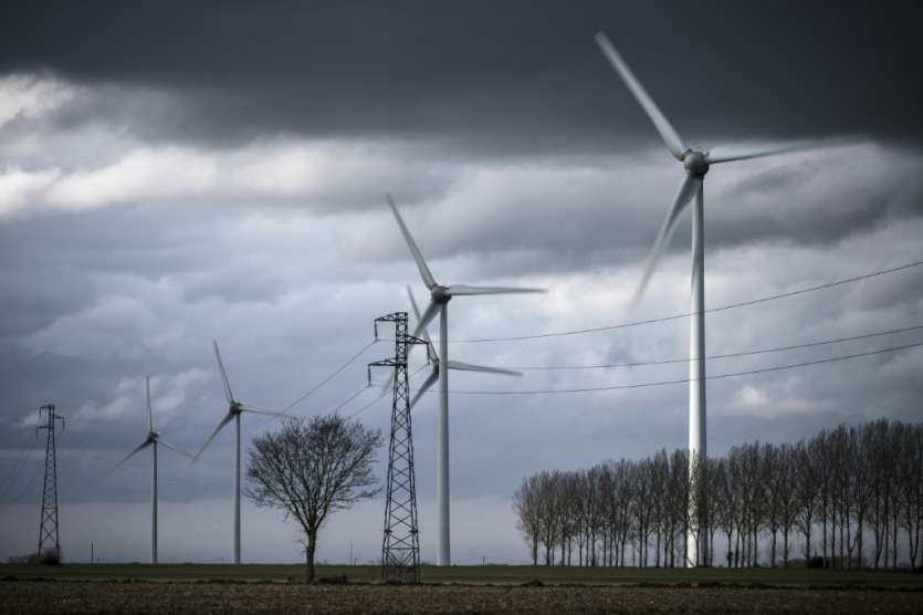 - © 2018 AFP | Crée le 24.09.2018 à 01h24 | Mis à jour le 24.09.2018 à 01h25ImprimerDes éoliennes à Conde-sur-Risle le 28 février 2018 JOEL SAGET-AFP/Archives