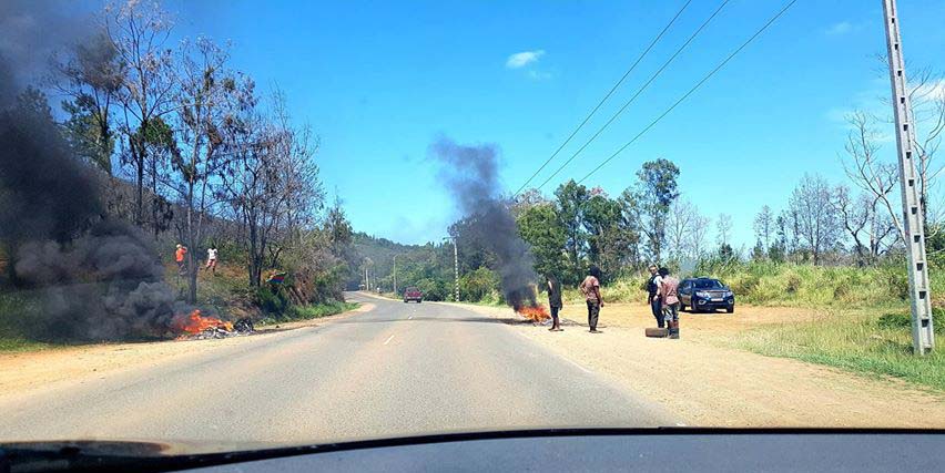 [10 heures] Des pneus en feu de part et d'autre de la RP1, après La Coulée