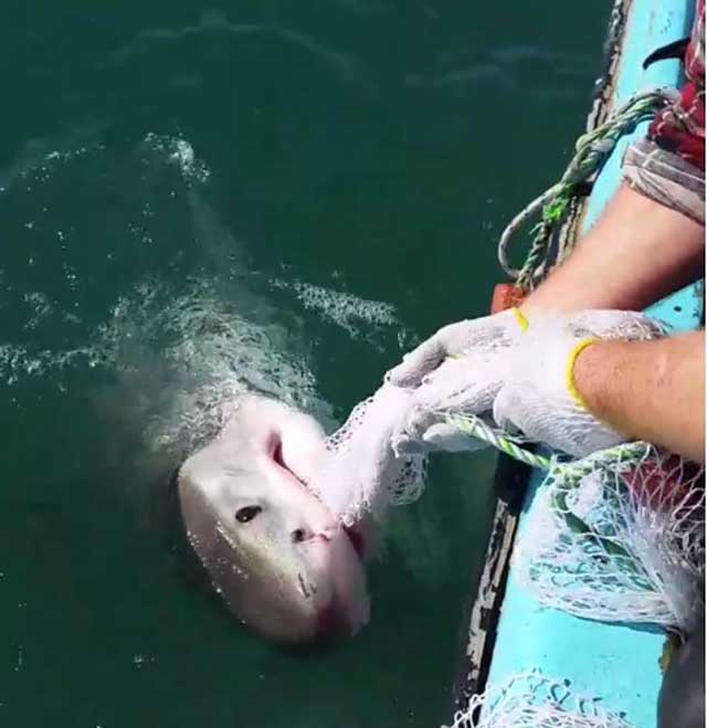L'un est têtu mais l'autre l'était visiblement plus que le premier. Et à ce petit jeu de tir à la corde, c'est le pêcheur qui l'a finalement emporté contre le requin blanc.