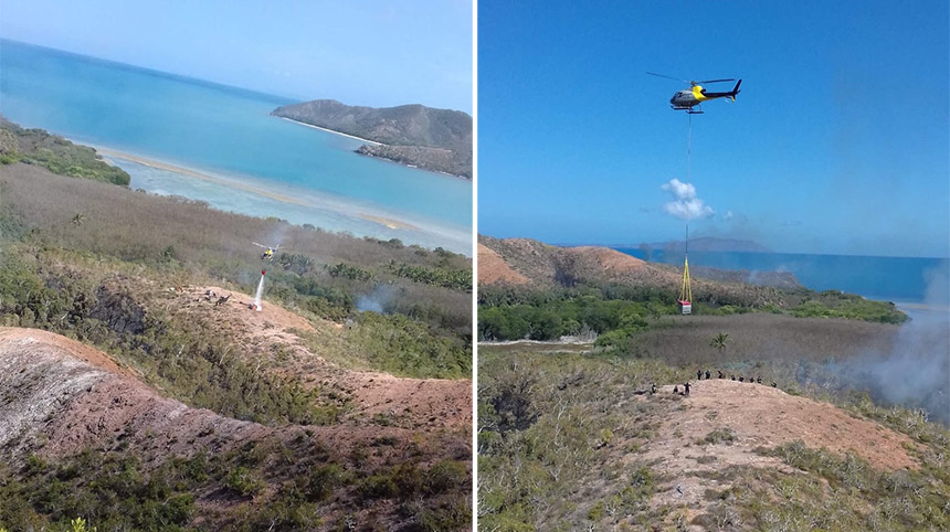 La direction de la sécurité civile et de la gestion des risques précise que ce dispositif est généralement déployé dans la chaîne quand le feu est inaccessible pour les camions.