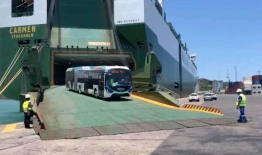 … c'est hier, jeudi 24 janvier, que la première rame du Néobus est arrivée au Port autonome de Nouméa, à bord du cargo « Carmen », battant pavillon suédois. Le véhicule restera au port le temps d'accomplir les formalités permettant son entrée sur le territoire.