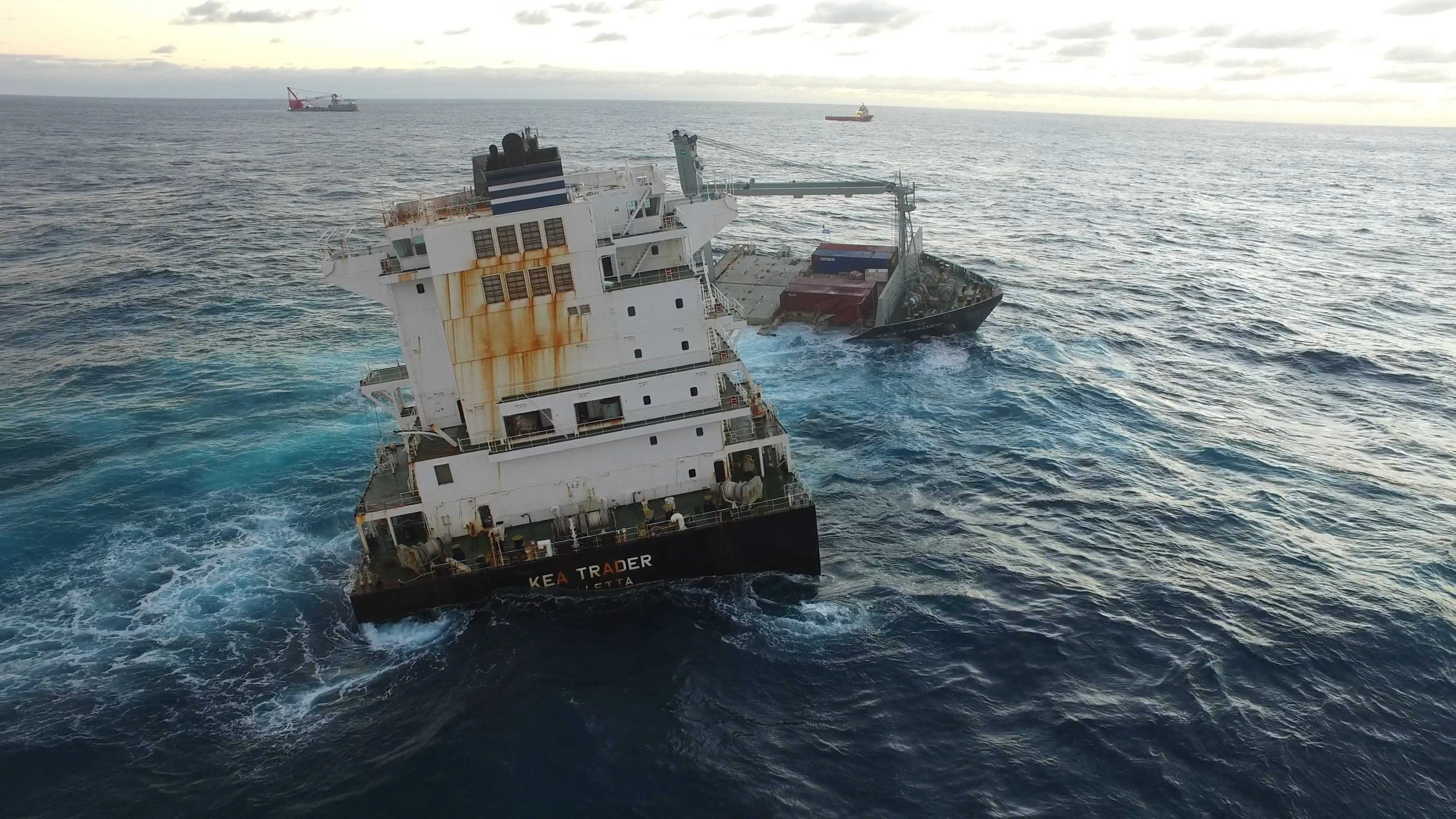 Après 325 jours sur le récif Durand, au large de Maré, le porte-conteneurs continue à fortement se dégrader. La semaine dernière, le mauvais temps a provoqué de nouvelles avaries sur le Kea Trader : « La partie avant de l’épave s’est désolidarisée de la partie arrière et présente désormais une gîte de 18 degrés », a annoncé Thierry Lataste, le haut-commissaire.