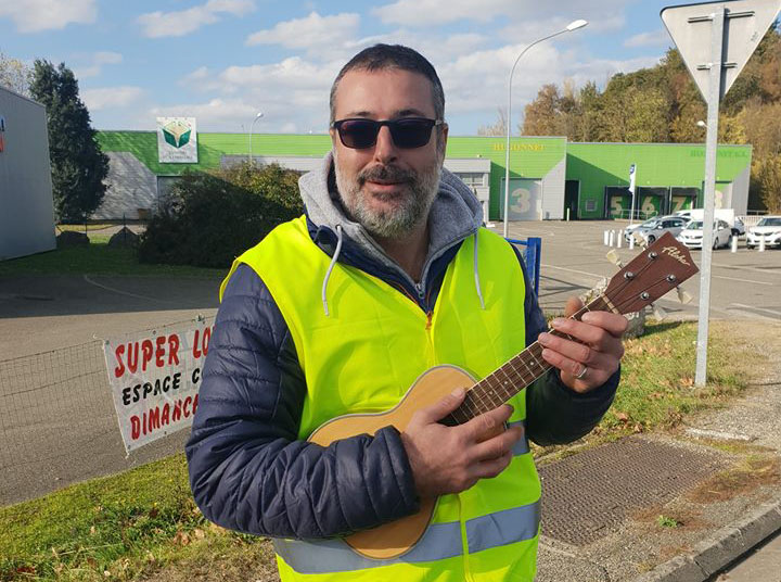 C'est Fabrice, un Calédonien installé en Métropole, qui a assuré une partie de l'animation musicale lors de cette journée de mobilisation avec une adaptation de « Madame Malo » au ukulélé, avec doudoune et capuche…