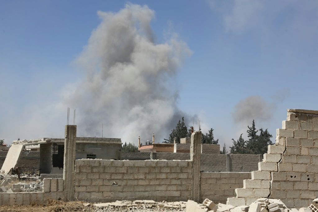 - © 2018 AFP | Crée le 08.04.2018 à 18h19 | Mis à jour le 08.04.2018 à 18h20ImprimerDe la fumée s'échappe de Douma (Ghouta orientale) près de Damas, le 7 avril 2018 STRINGER-AFP
