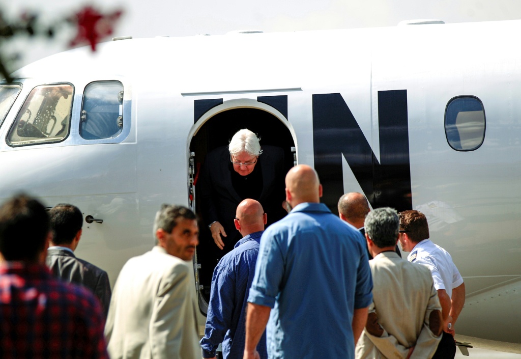 - © 2018 AFP | Crée le 05.12.2018 à 00h25 | Mis à jour le 05.12.2018 à 00h30ImprimerL'émissaire de l'ONU au Yémen, Martin Griffiths (C), à son arrivée à Sanaa, lors d'un précédent déplacement le 21 novembre 2018 MOHAMMED HUWAIS-AFP/Archives