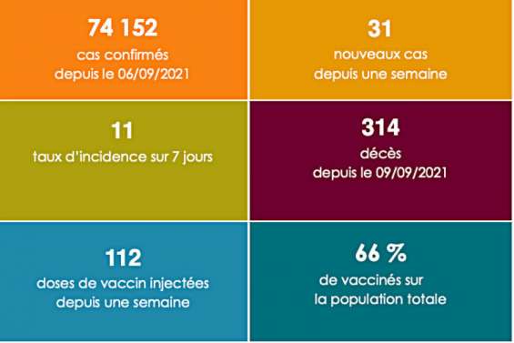 Le taux d'incidence de la Covid-19 est de 11 pour 100 000 habitants
