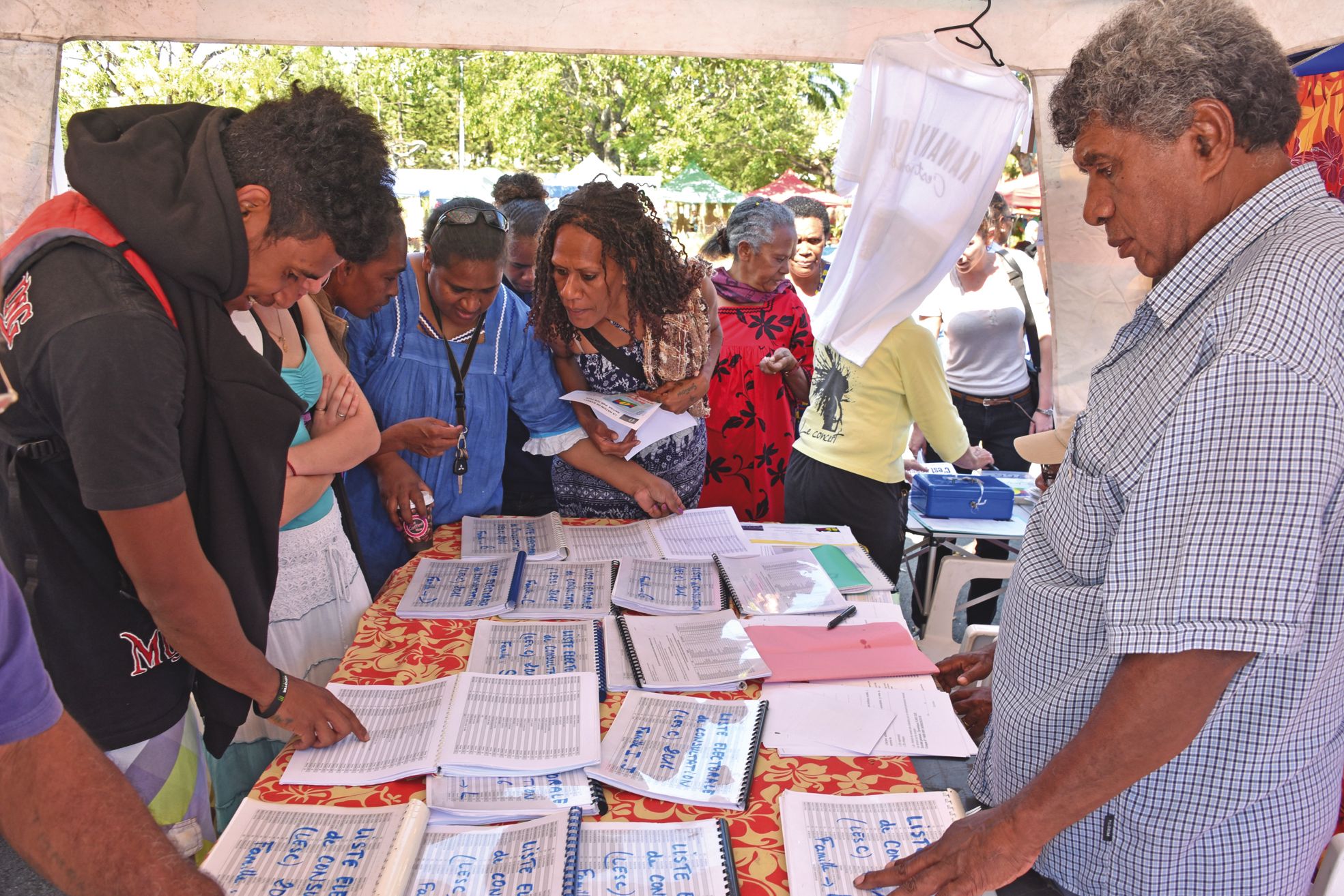 « Ça ne désemplit pas depuis ce matin », confie Madeleine, sur le stand de la commission politique et citoyenneté du FLNKS. Elle proposait aux visiteurs de vérifier si leur nom se trouvait bien sur les listes électorales. Dans le cas contraire, les militants les renseignaient sur les démarches à effectuer. Ils proposaient également d’acheter le journal du parti, La voie du FLNKS, de retour après un sommeil de deux ans.