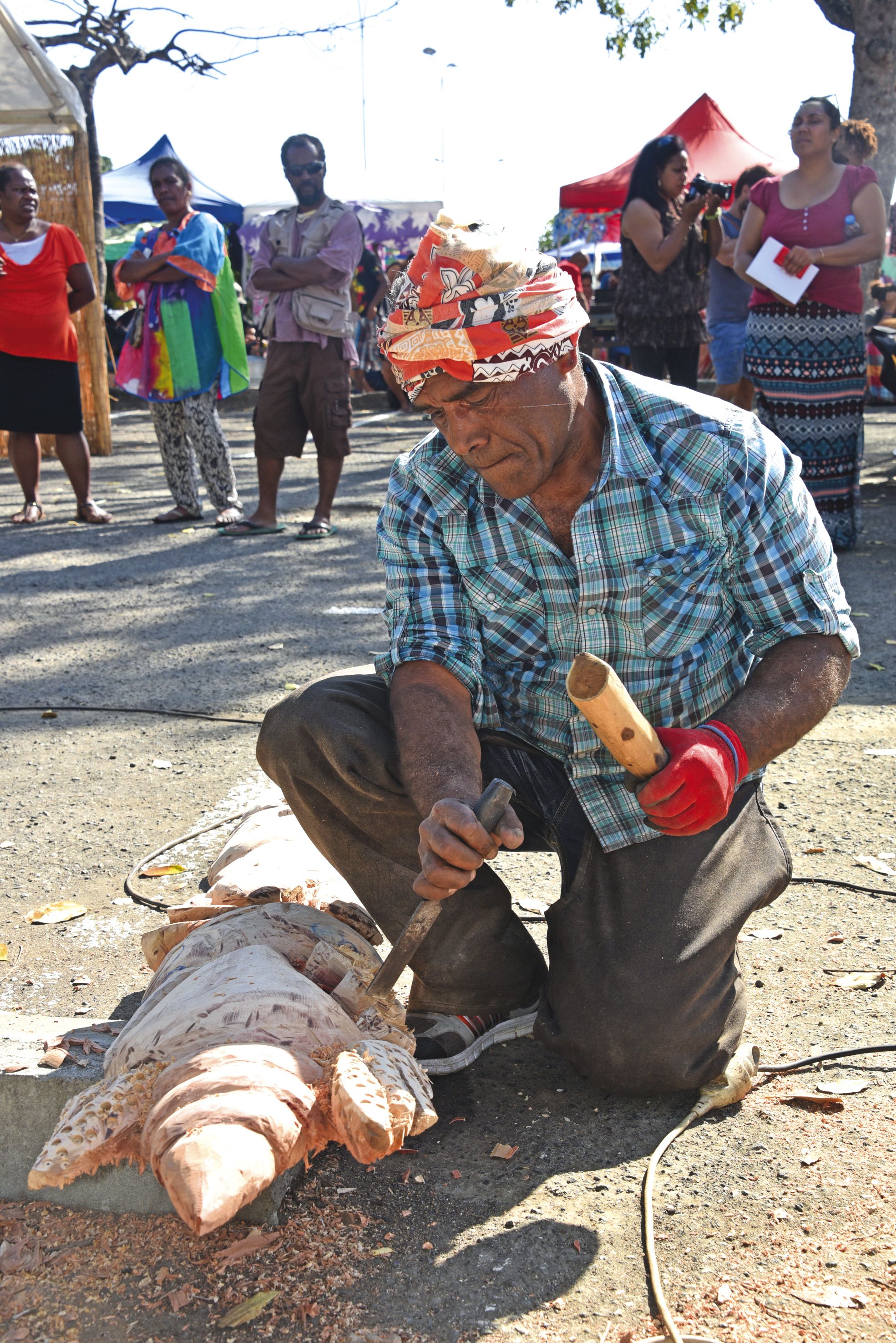 Kapoa Tiaou a lui improvisé une sculpture sur le thème de la mer. Selon lui, « le Kanak doit garder un lien avec sa culture et son histoire, et retrouver sa place dans son pays ».