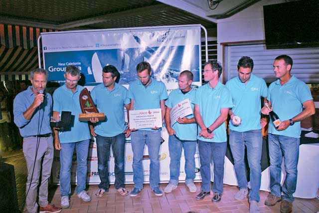 Voile. Samedi soir a eu lieu le podium de la Groupama Race. Ici, l’équipage de BNC, skippé par Michel Quintin, se voit remettre par Michel Desjoyeaux (à gauche) le prix de 1er Calédonien en compensé.