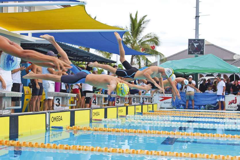 Natation. Le CNC a de nouveau gagné la compétition Interclubs, chez lui ce week-end, face aux clubs du Mont-Dore, de l’Olympique et de Dumbéa. Sur la photo, la série 2 des hommes s’élance pour un relais 10x50m, où les nageurs du CNC se sont imposés.