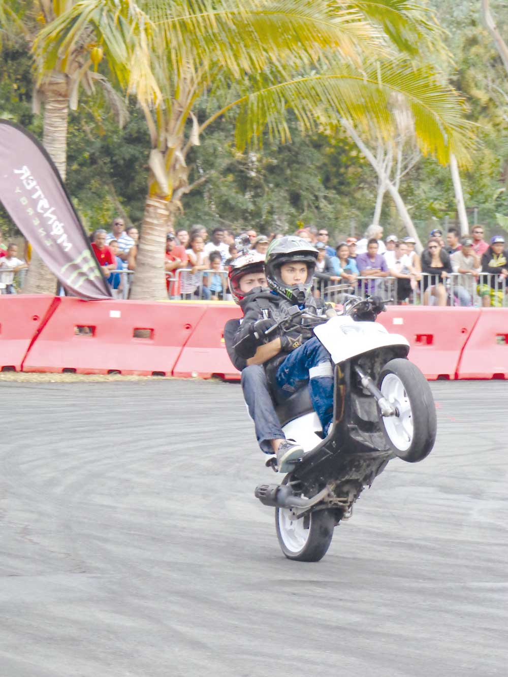 Sur le parking du centre socioculturel, le sport mécanique a pris plusieurs formes : drift, stunt en voiture ou en scooter.Sur le parking du centre socioculturel, le sport mécanique a pris plusieurs formes : drift, stunt en voiture ou en scooter.Photos E.J.